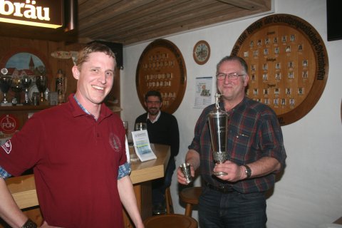 Hans Sauernheimer hält jetzt den richtigen Wander-Pokal von Markus in seinen Händen.